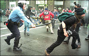 automatic rifles at frightened commuters to prevent other groups of demonstrators