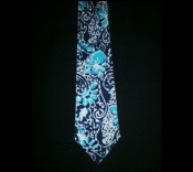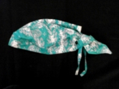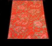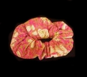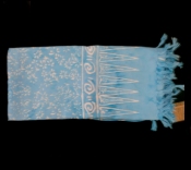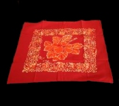 scarf, of hand-printed batik featuring a pinkish-red floral motif