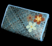 purse, hand-woven from natural screw palm leaves, floral design, with zipper