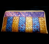 hand-woven from natural screw palm leaves, patchwork design, with zipper