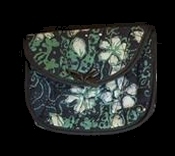 blue batik cosmetics purse, with a floral design