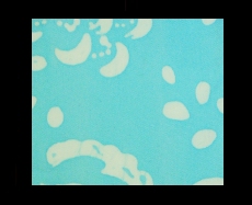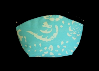 An attractive turquoise batik purse, with white floral designs and zipper.