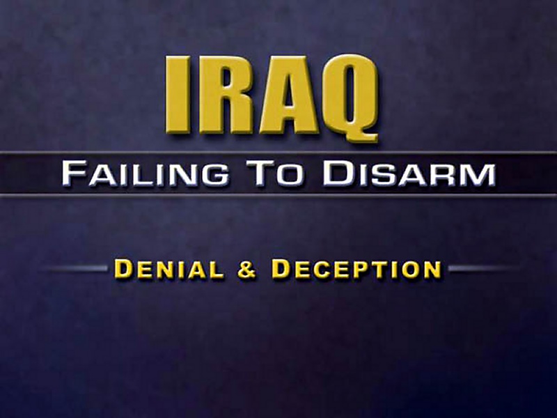 For example, let me focus on the now famous declaration that Iraq submitted to this Council on December 7. Iraq never had any intention of complying with this Council's mandate. Instead, Iraq planned to use the declaration to overwhelm us and to overwhelm the inspectors with useless information about Iraq's permitted weapons so that we would not have time to pursue Iraq's prohibited weapons. Iraq's goal was to give us in this room, to give those of us on this Council, the false impression that the inspection process was working.