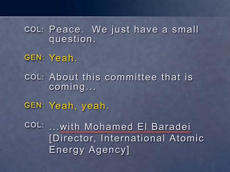 First, they acknowledge that our colleague, Mohammed ElBaradei is coming, and they know what he's coming for and they know he's coming the next day. He's coming to look for things that are prohibited. He is expecting these gentlemen to cooperate with him and not hide things.
