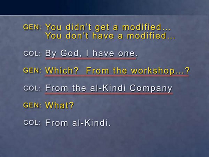 The Al-Kindi Company. This is a company that is well known to have been involved in prohibited weapons systems activity.