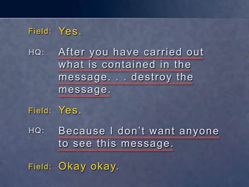 You go a little further into this message and you see the specific instructions from headquarters: "After you have carried out what is contained in this message, destroy the message because I don't want anyone to see this message."