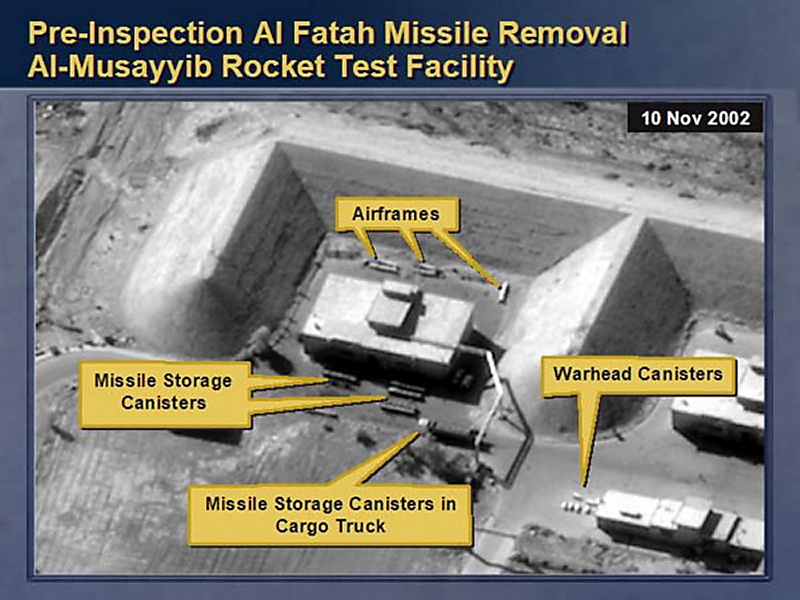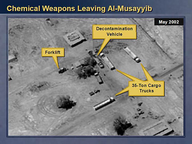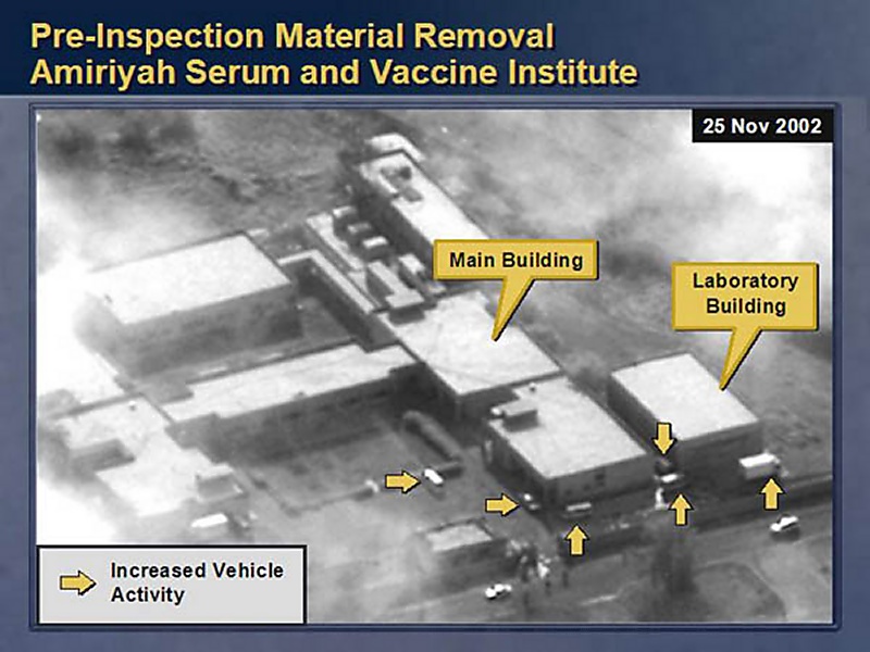 We also have satellite photos that indicate that banned materials have recently been moved from a number of Iraqi weapons of mass destruction facilities.