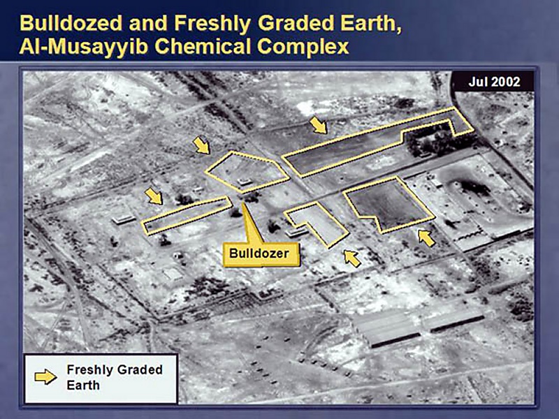 In this next example, you will see the type of concealment activity Iraq has undertaken in response to the resumption of inspections. Indeed, in November of 2002, just when the inspections were about to resume, this type of activity spiked. Here are three examples.