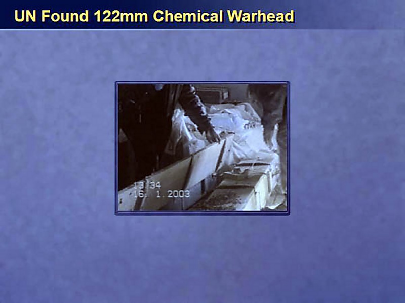 Let me remind you that of the 122 mm chemical warheads that the UN inspectors found recently, this discovery could very well be, as has been noted, the tip of a submerged iceberg.