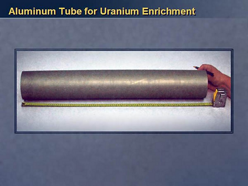 By now, just about everyone has heard of these tubes and we all know that there are differences of opinion. There is controversy about what these tubes are for. Most U.S. experts think they are intended to serve as rotors in centrifuges used to enrich uranium. Other experts, and the Iraqis themselves, argue that they are really to produce the rocket bodies for a conventional weapon, a multiple rocket launcher.