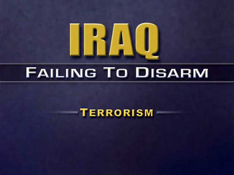 My friends, the information I have presented to you about these terrible weapons and about Iraq's continued flaunting of its obligations under Security Council Resolution 1441 links to a subject I now want to spend a little bit of time on, and that has to do with terrorism.