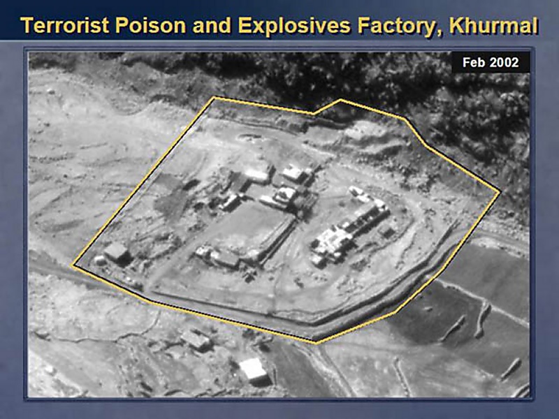 When our coalition ousted the Taliban, the Zakawi network helped establish another poison and explosive training center camp, and this camp is located in northeastern Iraq. You see a picture of this camp.