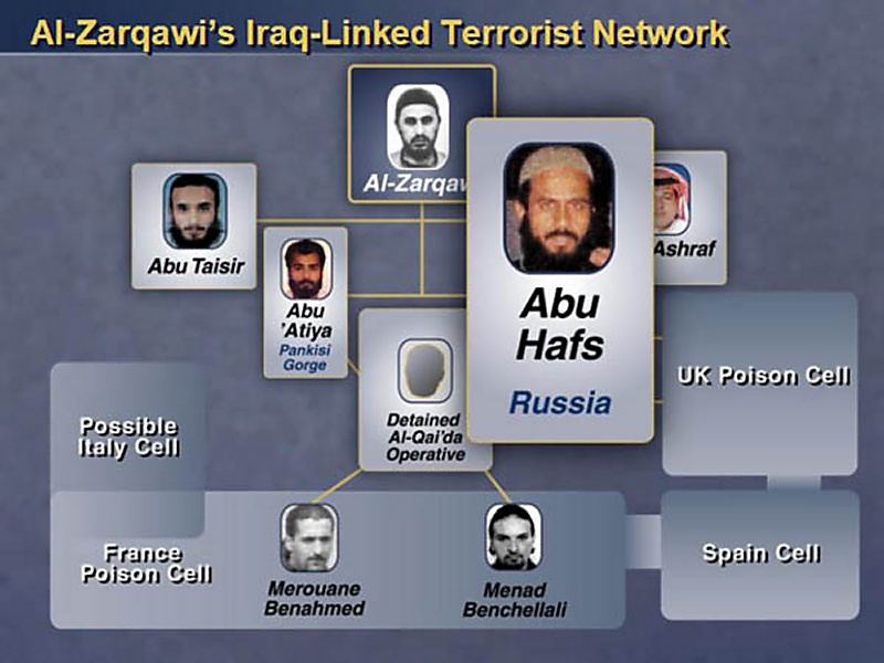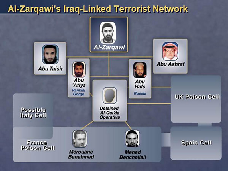 But what I want to bring to your attention today is the potentially much more sinister nexus between Iraq and the al-Qaida terrorist network, a nexus that combines classic terrorist organizations and modern methods of murder. Iraq today harbors a deadly terrorist network headed by Abu Massad Al-Zakawi an associate and collaborator of Usama bin Laden and his al-Qaida lieutenants.
