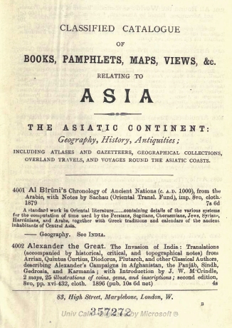 Classified catalogue of books, pamphlets, maps, views, etc. relating to Asia