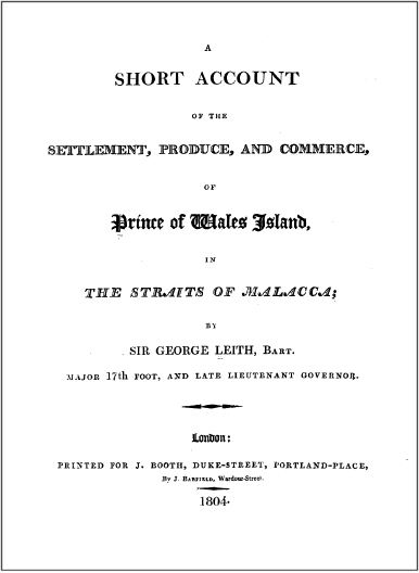 A Short Account of the Settlement, Produce, and Commerce of Prince of Wales Island, in the