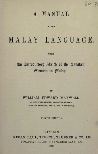 A manual of the Malay language. With an introductory sketch of the Sanskrit element in Malay