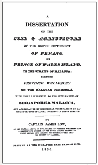 A Dissertation on the Soil & Agriculture of the British Settlement of Penang, Or Prince of Wales Island, in the Straits of Malacca: