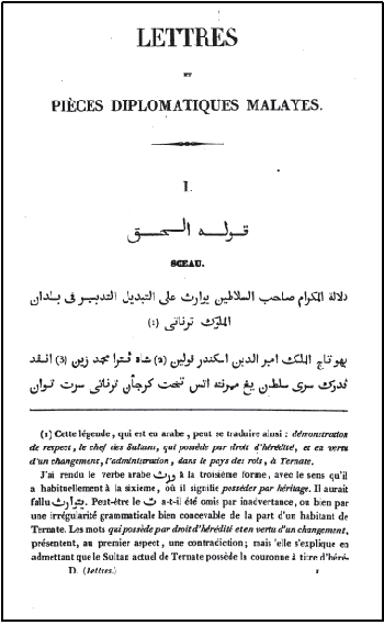 Lettres et pièces diplomatiques écrites en malay