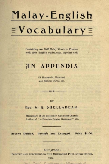 Containing over 7000 Malay words or phrases with their English equivalents together with an appendix of household, nautical and medical terms