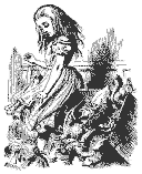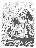 `Who cares for you?!' said Alice. `You're nothing but a pack of cards!' At this the whole pack rose up into the air, and came flying down upon her: she gave a little scream, half of fright and half of anger, and tried to beat them off, and found herself lying on the bank, with her head in the lap of her sister, who was gently brushing away some dead leaves that had fluttered down from the trees upon her face. `Wake up, Alice dear!' said her sister; `Why, what a long sleep you've had!' `Oh, I've had such a curious dream!' said Alice. “A nightmare, in fact!” |
