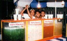 The procession passed by the main bus stop at the Central Market. It was at that very spot last Saturday where baton-waving FRU riot police were charging past me. My significant other made sure she reminded me of that fact, as we looked furtively around for any police presence. At the bus stop, Reformasi leaflets were distributed to the throngs of curious commuters. One enthusiastic roadside drink vendor wanted to sell me a glass of "air tebu reformasi" (Reformasi sugar cane water) to quench my thirst! I respectfully declined.