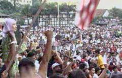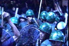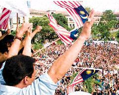 She was even more electric than at the mosque. After a thunderous cry of "Reformasi!" from the crowd, she asked everyone to disperse peacefully. I think we are seeing a real leader come out from the wings - they say real character emerges during adversity and it is then that the best comes out of people. Whatever happens to Anwar, Wan Azizah has my unreserved vote. Definitely First Lady material, maybe even first woman Prime Minister material too! Today's rally was also, personally, a nostalgic experience. Twenty-four years ago, in 1974, I was a young 15 year-old schoolboy going to what was then the Selangor Library, just behind Independence Square, to do some studying for my exams. I turned the corner into the Square only to see hundreds of young people running towards me being pursued by Federal Reserve Unit (FRU) riot police. It was the 1974 student demonstrations against poverty in Baling. Tear gas canisters were exploding around me, batons were waving, some students had blood on their clothes.