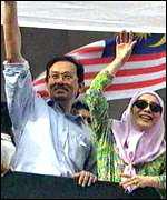 with sub-machine guns stormed Anwar Ibrahim's home. In front of his wailing