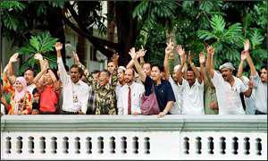 The lady admitted she was very confused by everything that was happening. "I don’t know if he is guilty or innocent. But even if he is guilty, I don’t understand why they are treating him like this. Our leaders are coming out with so much filth in the papers. It shames his family and it shames our race." She turned to the Indian pensioner. "We Malays don’t usually treat people like this. ‘Maruah’ (Dignity) is very important to us. Even the guilty deserve dignity. It’s in our ancient annals, the Sejarah Melayu. But our leaders don’t seem to understand this. This is not the Malay way. That is why so many of us are angry." A Chinese gentlemen interjected. "I believe Anwar is innocent - until the court proves otherwise. That is the basis of justice and rule of law - a man is innocent until proven guilty by a court of law. But look at that ...". He pointed to the headline of a local English daily that morning. "They’ve already found him guilty. What’s the use of us queuing here for hours waiting for justice?" I liked his phrase. Waiting for justice. I made a mental note to use it as the title for my next article. By then, it was already 8:30. The rush hour traffic was busier now, with hundreds of curious drivers and bus passengers gawking at our ever-increasing line of people. It was as though there were looking at some terrible road accident or a dying road casualty. And perhaps there were those who felt that justice was indeed a casualty here. There was a small stir when we spotted someone crossing the road towards the court building. It was the Special Rapporteur on Judicial Independence for the United Nations Commission on Human Rights, Param Cumaraswamy. There was an even bigger stir when we spotted him storming out of the building, looking rather annoyed. I asked a reporter friend of mine who was hovering nearby what had happened. "They wouldn’t let him into court," he said. "The United Nations appoints this one man - a Malaysian - as their sole representative in ensuring the independence of legal institutions worldwide, he sits in court houses in Cambodia, El Salvador, Haiti and Rwanda - and they won’t even let him enter a court in his own country. Ironic isn’t it?" I stopped myself from letting out a cheer of "Malaysia Boleh!"("Malaysia Can!"). It wouldn’t have seemed appropriate in front of a foreign journalist.