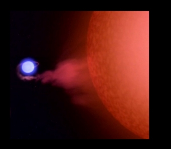 evolved star (subgiant) onto an extremely dense white dwarf star.