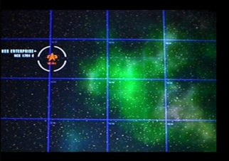 the Romulan Neutral Zone. A dense nebula field with many greenish-hued
